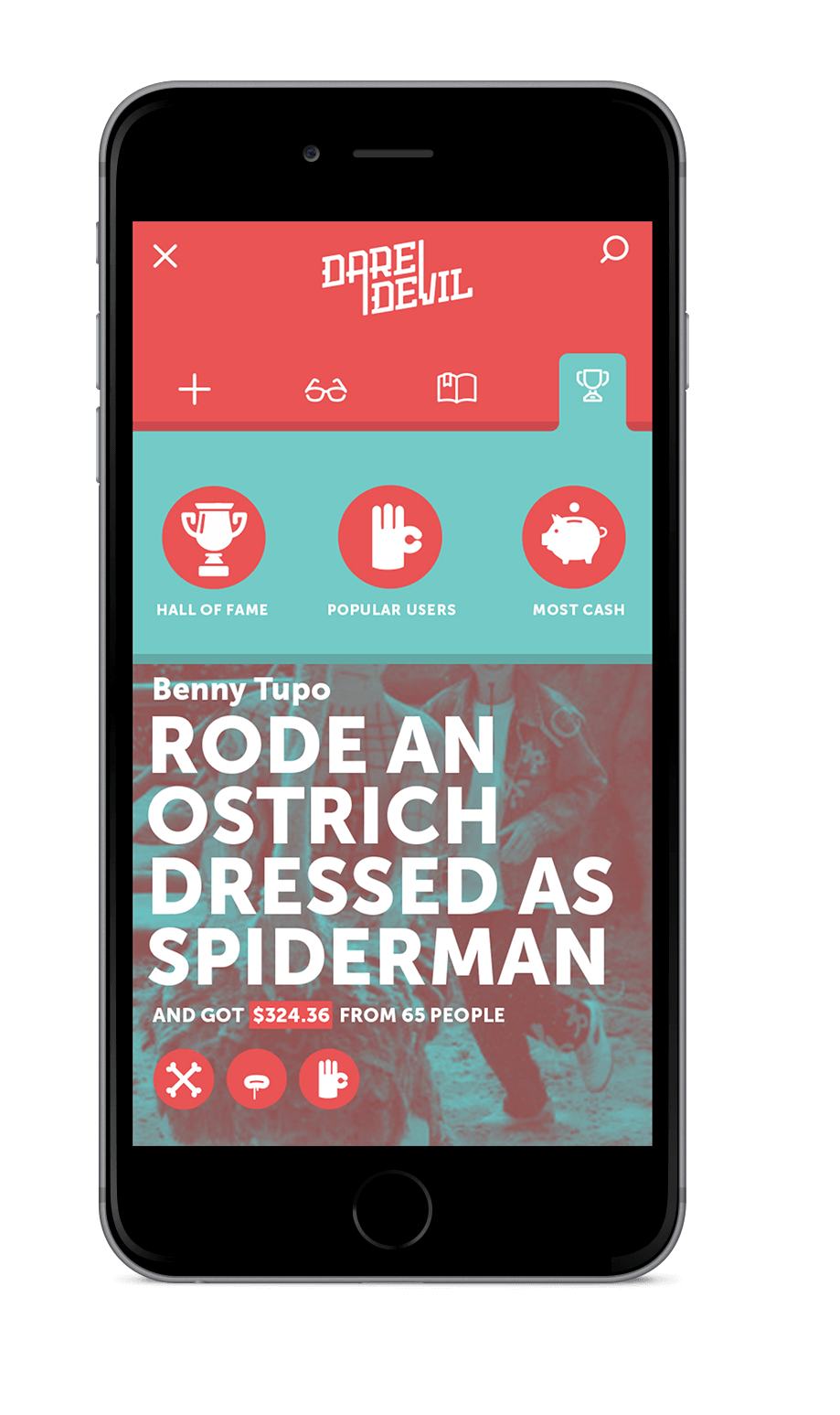 every time a dare is suggested any user can double dare it to add some cash, and the reward piles up. upload the dare video and collect it.